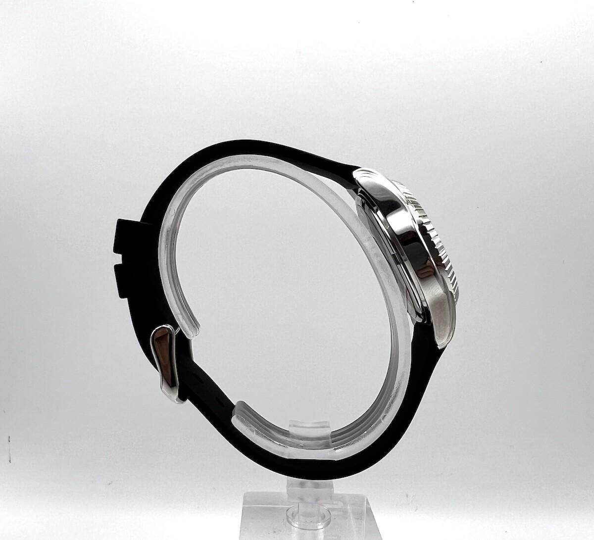 Il segnatempo è un modello vintage e monta un cinturino nuovo in silicone nero: è scontato per questi due motivi.